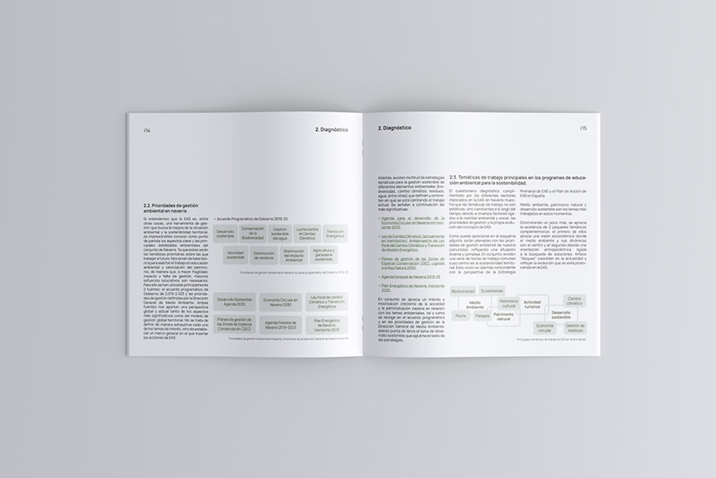 Para este proyecto se nos pidió realizar la re-maquetación de un librillo que habla sobre el medio ambiente de Navarra, anteriormente publicado por el Gobierno de Navarra.